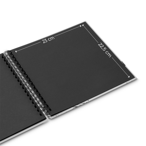 • čierne vnútorné listy poskytujú priestor pre vaše príbehy a spomienky (fotografie, kresby, texty, pohľadnice, vstupenky …)