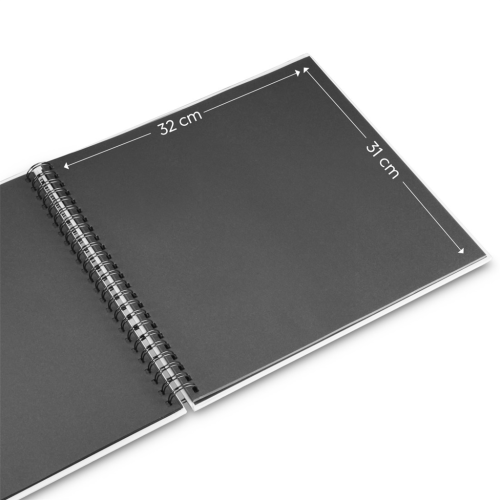 • čierne vnútorné listy poskytujú priestor pre vaše príbehy a spomienky (fotografie, kresby, texty, pohľadnice, vstupenky …)