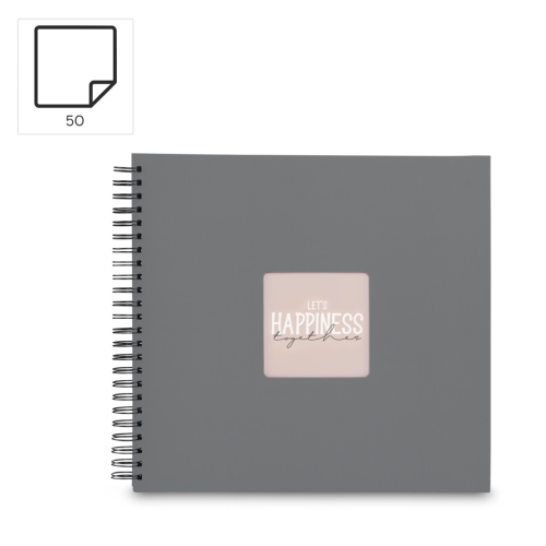 Hama album klasický špirálový FINE ART 36x32 cm, 50 strán, kamenná šedá, čierne listy
