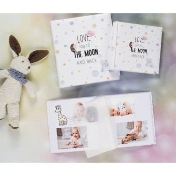 - album s roztomilým detským motívom - na lepenie fotografií - tvrdé dosky z polaminovaného papiera - špeciálna povrchová úprava dosiek s lesklou grafikou - pre 100 fotografií formátu 10x15 cm - biele vnútorné …