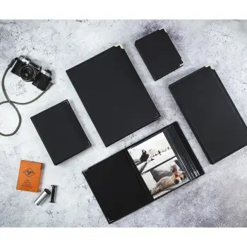 - album na zasúvanie fotografií - pre 100 fotografií formátu 10x15 cm - povrch z umelej kože s jemnou štruktúrou a čiernym prešívaním - strieborné kovové rohy dodávajú albumu obchodný vzhľad a chránia pred …