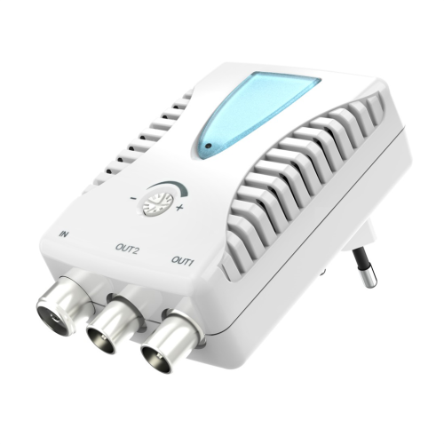 - aktívny anténny zosilňovač pre dve zariadenia (1 vstup/2 výstupy) - napr. pre pripojenie dvoch televízorov k anténnej zásuvke - integrovaný zosilňovač umožňuje vedenie signálu na dlhšie vzdialenosti - regulovateľné …