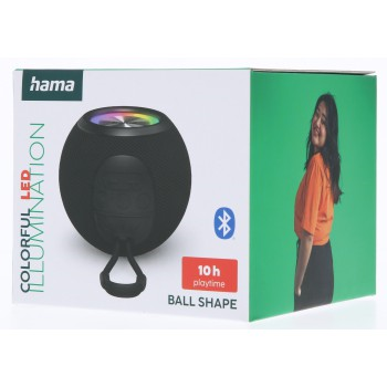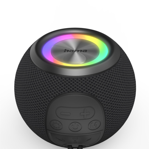 Hama Ball, Bluetooth reproduktor, 5 W, LED podsvietenie, AUX-in, USB-A, microSD slot, čierny
