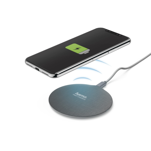 Hama bezdrôtová nabíjačka FC10, Qi, 10 W, kov/textil, čierna