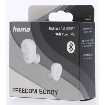 Hama Bluetooth slúchadlá Freedom Buddy, štuple, nabíjacie púzdro, biela