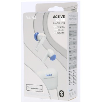 • podrobné nastavenie cez aplikáciu Hama Smart Home: nastavenie ANC, ekvalizér, hlasitosť, nastavenie dotykového ovládania, hľadanie slúchadiel a ďalšie