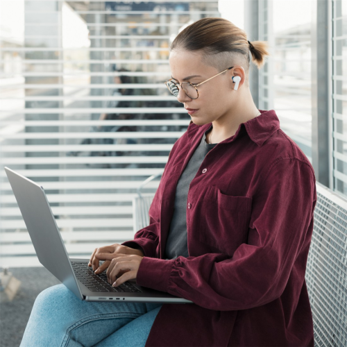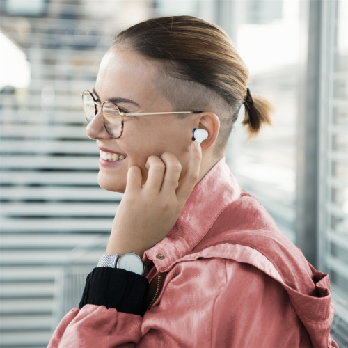 • úplne bezdrôtové slúchadlá do uší (true wireless) pre počúvanie hudby a telefonovanie cez Bluetooth