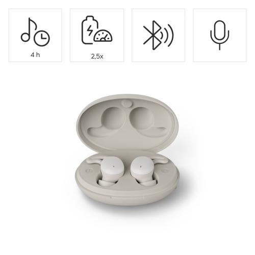 • úplne bezdrôtové slúchadlá do uší (true wireless) pre počúvanie hudby a telefonovanie cez Bluetooth