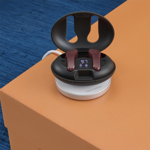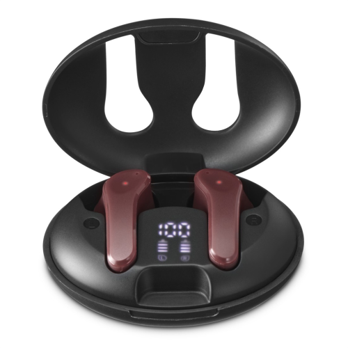 • LED displej vo vnútri puzdra zobrazuje nabitie puzdra v percentách a priebehu nabíjania slúchadiel