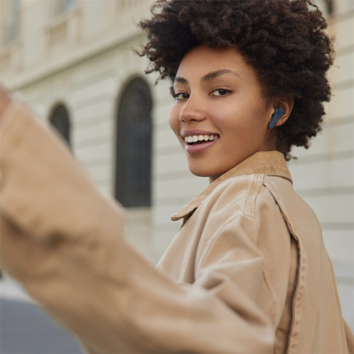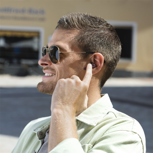 • úplne bezdrôtové slúchadlá do uší (true wireless) pre počúvanie hudby a telefonovanie cez Bluetooth