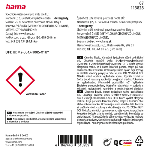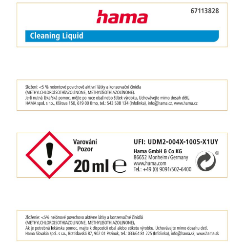 • vrátane čistiacej kvapaliny (20 ml) a úložného obalu