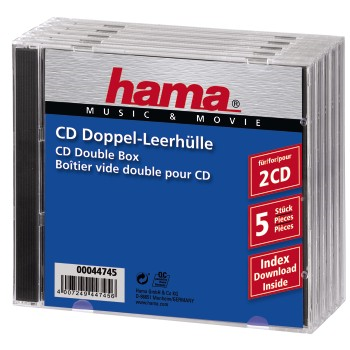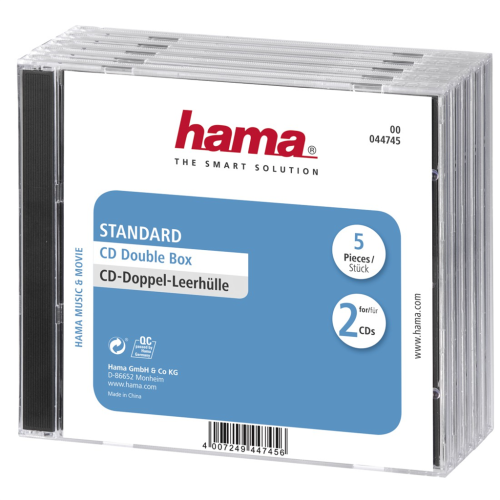 Hama CD Double box, standardní obal na 2 CD/DVD, průhledný/černý, balení 5 ks (cena za balení)