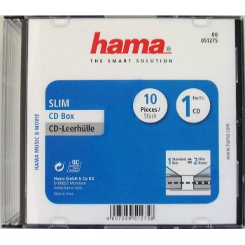 Hama CD Slim Box, obal na 1 cd/dvd, priehľadný/čierny, balenie 10 ks (cena za balenie)