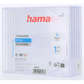 Hama CD Standard box, štandardný obal na 1 CD/DVD, priehľadný, balenie 5 ks (cena za balenie)