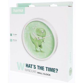 Hama Cebu, detské nástenné hodiny, priemer 25 cm, tichý chod, s dinosaurom