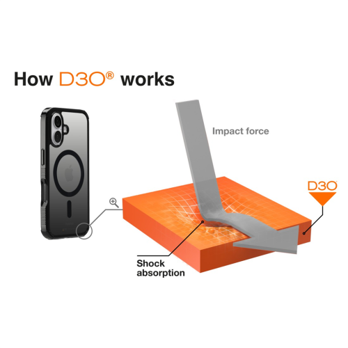 D3O® je unikátny inovatívny materiál, ktorý je takmer nezničiteľný. Tento materiál zaručí aj pri minimálnej hrúbke krytu maximálnu ochranu zariadenia pri nárazoch, pádoch a úderoch, a to dokonca aj pri páde z výšky 3,5 m. Zároveň ale vôbec neovplyvní používanie a ovládanie zariadenia. Tvrdosť 4H zaručuje mimoriadnu odolnosť voči poškriabaniu.