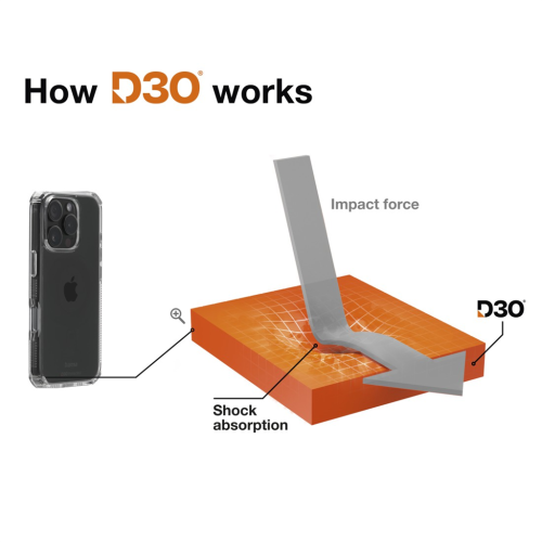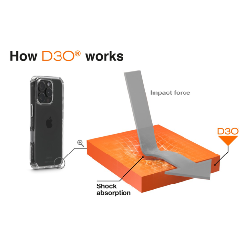 D3O® je unikátny inovatívny materiál, ktorý je takmer nezničiteľný. Tento materiál zaručí aj pri minimálnej hrúbke krytu maximálnu ochranu zariadenia pri nárazoch, pádoch a úderoch, a to dokonca aj pri páde z výšky 3,5 m. Zároveň ale vôbec neovplyvní používanie a ovládanie zariadenia. Tvrdosť 4H zaručuje mimoriadnu odolnosť voči poškriabaniu. Vďaka použitým materiálom zostane kryt stále číry a nikde nezožltne, ako sa to stáva pri bežných krytoch.