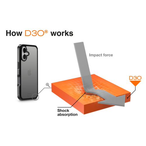 D3O® je unikátny inovatívny materiál, ktorý je takmer nezničiteľný. Tento materiál zaručí aj pri minimálnej hrúbke krytu maximálnu ochranu zariadenia pri nárazoch, pádoch a úderoch, a to dokonca aj pri páde z výšky 3,5 m. Zároveň ale vôbec neovplyvní používanie a ovládanie zariadenia. Tvrdosť 4H zaručuje mimoriadnu odolnosť voči poškriabaniu.