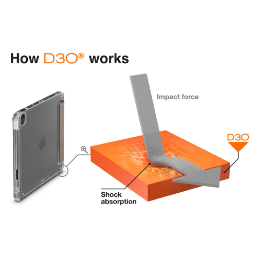 D3O® je unikátny inovatívny materiál, ktorý je takmer nezničiteľný. Tento materiál zaručí aj pri minimálnej hrúbke krytu maximálnu ochranu zariadenia pri nárazoch, pádoch a úderoch, a to dokonca aj pri páde z výšky 3,5 m. Zároveň ale vôbec neovplyvní používanie a ovládanie zariadenia. Tvrdosť 4H zaručuje mimoriadnu odolnosť voči poškriabaniu. Vďaka použitým materiálom zostane kryt stále číry a nikde nezožltne, ako sa to stáva pri bežných krytoch.