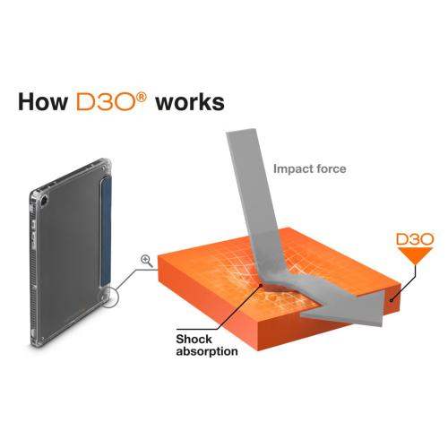 D3O® je unikátny inovatívny materiál, ktorý je takmer nezničiteľný. Tento materiál zaručí aj pri minimálnej hrúbke krytu maximálnu ochranu zariadenia pri nárazoch, pádoch a úderoch, a to dokonca aj pri páde z výšky 3,5 m. Zároveň ale vôbec neovplyvní používanie a ovládanie zariadenia. Tvrdosť 4H zaručuje mimoriadnu odolnosť voči poškriabaniu. Vďaka použitým materiálom zostane kryt stále číry a nikde nezožltne, ako sa to stáva pri bežných krytoch.