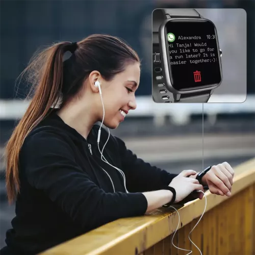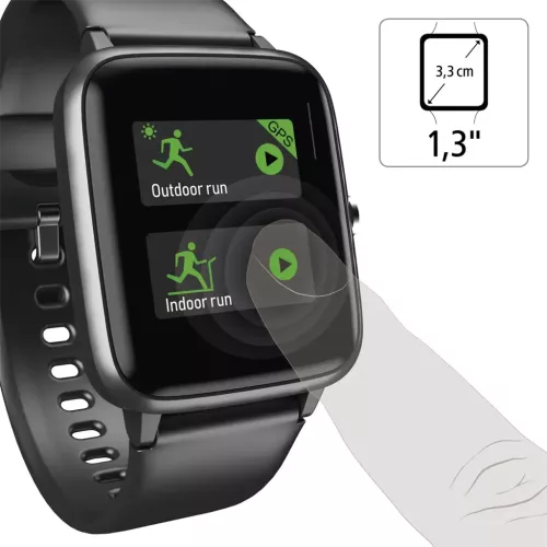 Výbava: Bluetooth 5.0, GPS, notifikácia (hovory, SMS, e-mail...), budík s vibráciami, monitoring srdcového tepu, monitoring spánku, režim nerušiť, stopky, časovač, krokomer, spálené kalórie, upozornenie na neaktivitu, 14 športových režimov, ovládanie hudby, zobrazenie počasia, sledovanie menštruačného cyklu, funkcie nájsť telefón, aplikácie Apple Health, Google Fit, Strava alebo Hama FIT Pro