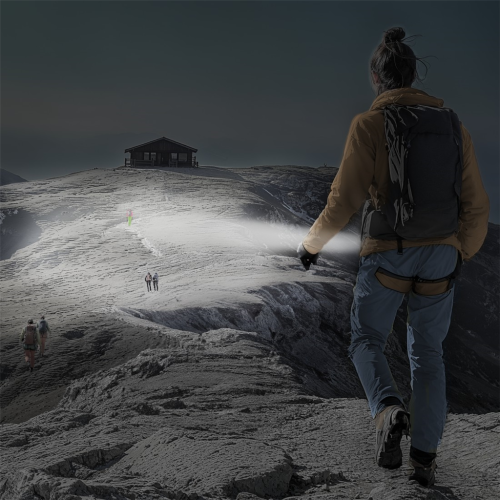• štyri svetelné režimy: veľmi jasné svetlo (1000 lm / 270 m), jasné svetlo (600 lm / 200 m), tlmené svetlo (330 lm / 150 m), blikanie a SOS