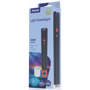 Hama FLX1000, LED svietidlo, hliníkové, 1000 lm / 270 m, 4 režimy + SOS, IP44, zoom, karabínka, batéria