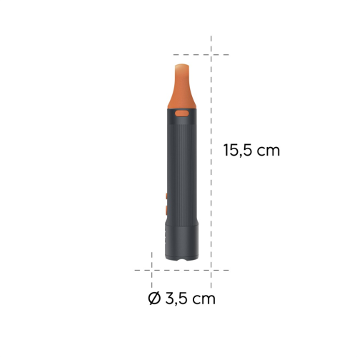 • štyri svetelné režimy: veľmi jasné svetlo (350 lm / 230 m), jasné svetlo (200 lm / 180 m), tlmené svetlo (100 lm / 130 m), blikanie a SOS