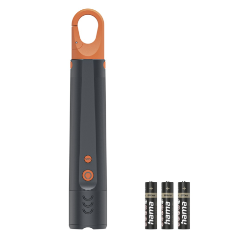 Hama FLX350, LED svietidlo, hliníkové, 350 lm / 230 m, 4 režimy + SOS, IP44, zoom, karabínka, batéria