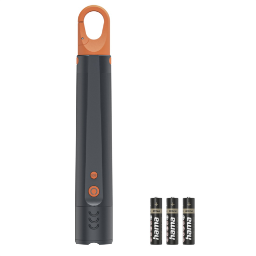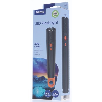 Hama FLX600, LED svietidlo, hliníkové, 600 lm / 250 m, 4 režimy + SOS, IP44, zoom, karabínka, batéria