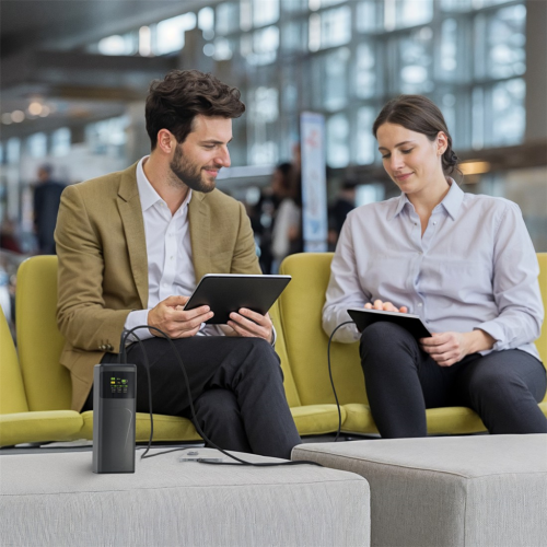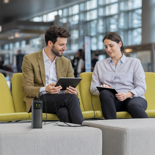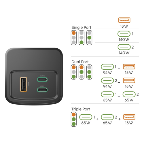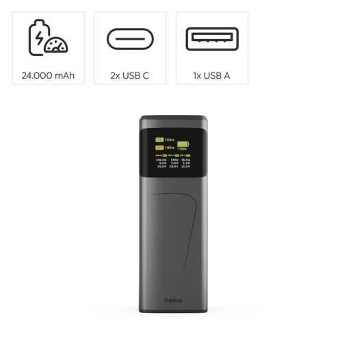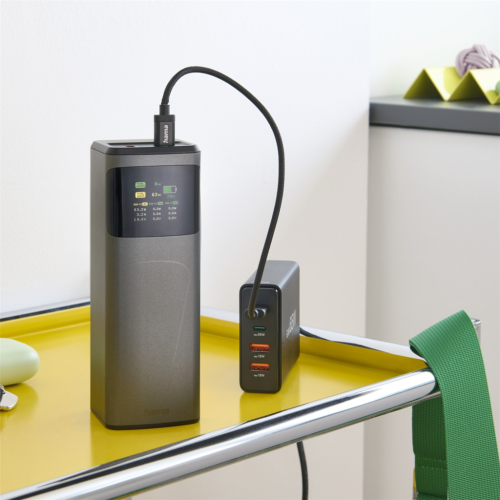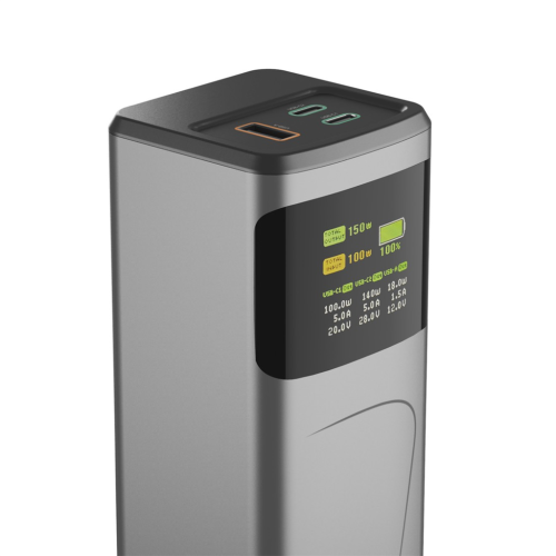 Poznámka: Powerbanka má celkový výstupný výkon max. 150 W. Ak pripojíte dve zariadenia k obom USB-C zásuvkám, výkon každej zásuvky bude 65 W. Ak pripojíte zariadenie ku všetkým trom zásuvkám, výkon každej USB-C zásuvky bude 65 W a USB-A zásuvky 18 W.