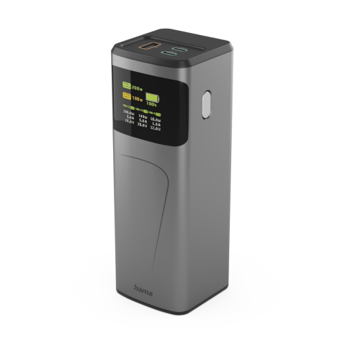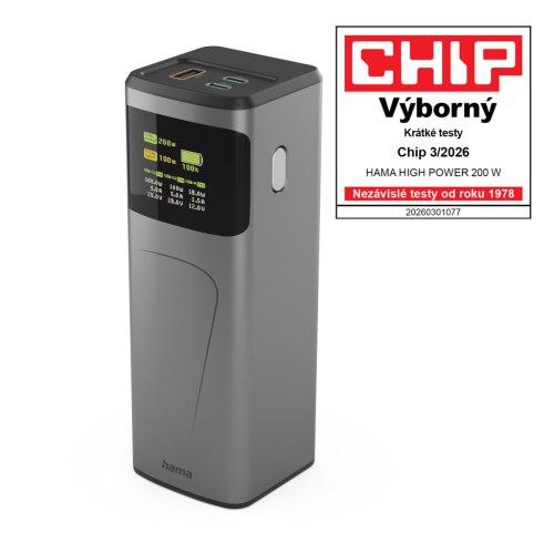 Poznámka: Powerbanka má celkový výstupný výkon max. 200 W. Ak pripojíte dve zariadenia k obom USB-C zásuvkám, výkon každej zásuvky bude 100 W. Ak pripojíte zariadenie ku všetkým trom zásuvkám, výkon sa rozdelí na 100 W pre jednu USB-C zásuvku, 65 W pre druhú USB-C a 18 W pre USB-A zásuvku.