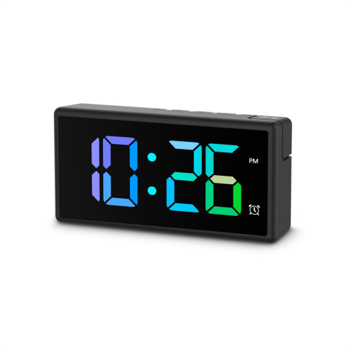 - budík s digitálnym zobrazením času, dátumu a času budenia - veľký displej s veľkými číslicami - možnosť nastavenia farieb číslic; jedna farba rovnaká pre všetky číslice (na výber zo 4 farieb: biela, modrá, …