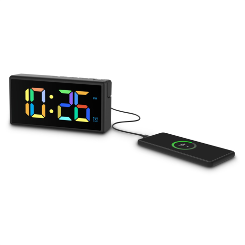 Hama Ibiza, digitálny budík, viacfarebný displej, USB napájanie, USB s funkciou nabíjania, čierny