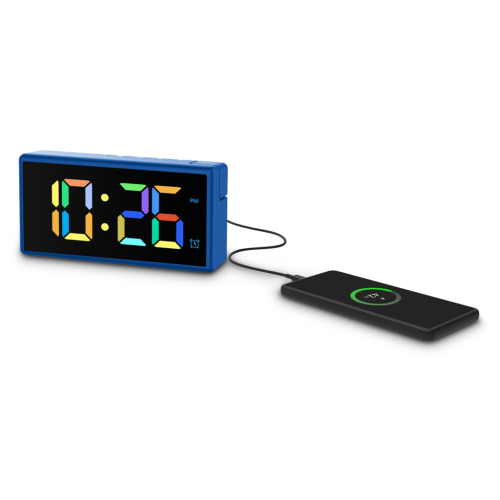 Hama Ibiza, digitálny budík, viacfarebný displej, USB napájanie, USB s funkciou nabíjania, modrý