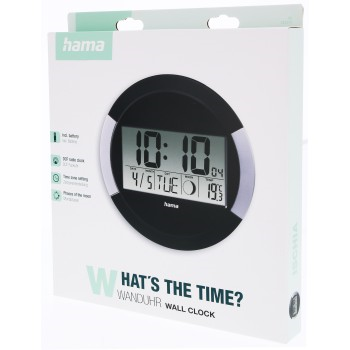 Hama Ischia, nástenné hodiny digitálny, rádiový signál DCF, dátum, teplota, fáza mesiaca