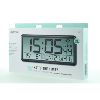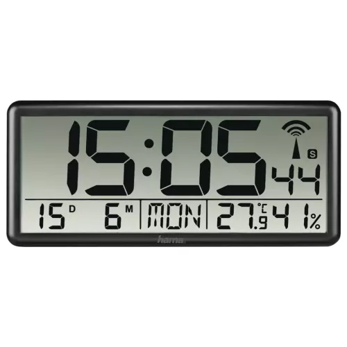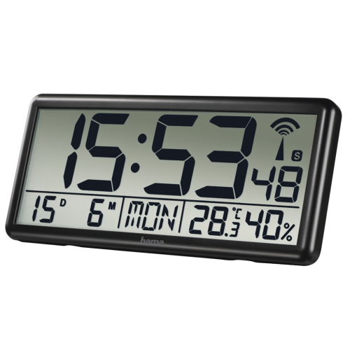 Hama Jumbo, digitálne nástenné hodiny, riadené rádiovým signálom, čierne