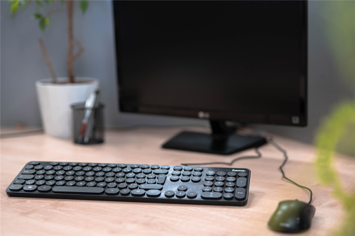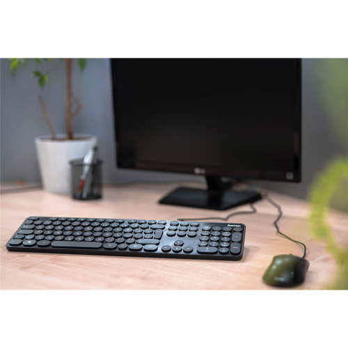 - moderná multimediálna klávesnica s okrúhlymi klávesmi v štýle písacieho stroja na zadávanie údajov do PC alebo notebooku - utlmené tlačidlá, umožňujú tichú a nerušenú prácu - laserom vypálené znaky …