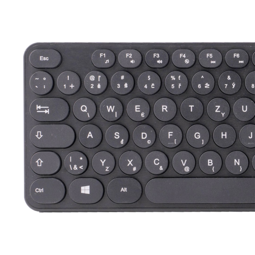 • moderná multimediálna klávesnica s okrúhlymi klávesmi v štýle písacieho stroja pre zadávanie údajov do PC alebo notebooku
