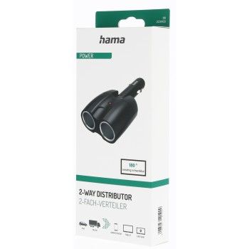 Hama kĺbová rozdvojka zapaľovača do vozidla na pripojenie dvoch zariadení do zásuvky cigaretového zapaľovača (CL) vo vozidle, vhodná pre osobné aj nákladné automobily (12/24 V)
