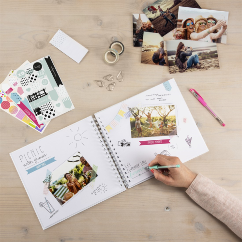 • biele vnútorné listy poskytujú priestor pre vaše príbehy a spomienky (fotografie, nálepky, kresby, texty, pohľadnice, vstupenky …)