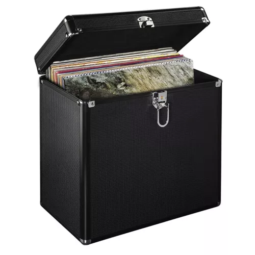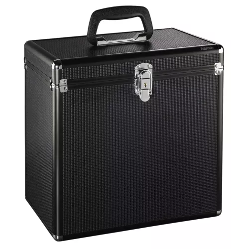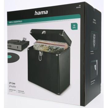 Hama kufrík na 50 gramofónových dosiek (vinyl/LP), hliníkový vzhľad, čierny