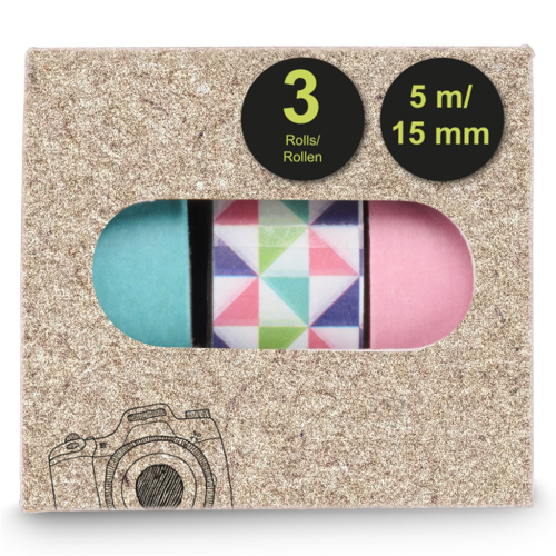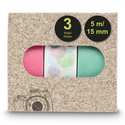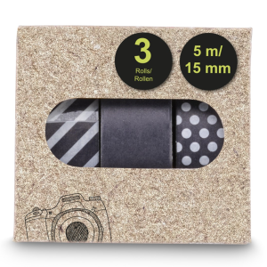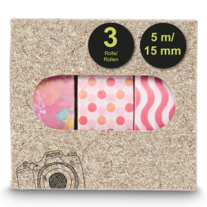 • každý set obsahuje tri lepiace pásky s rôznymi vzormi alebo farbami