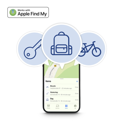 • pre použitie s operačným systémom Apple (iOS/iPadOS/macOS) a aplikáciou Apple Find My