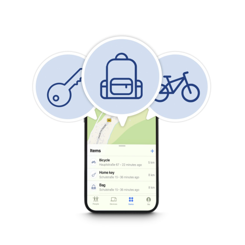 • v prípade dosahu Bluetooth môžete vec vyhľadať pomocou hlasného zvukového signálu (120 dB)