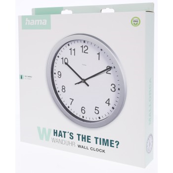 Hama Mallorca, nástenné hodiny, priemer 30 cm, tichý chod, strieborné