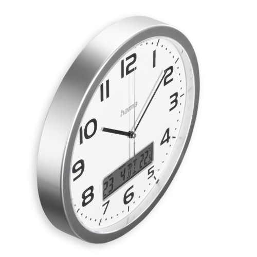 Hama Moorea, nástenné hodiny riadené rádiovým signálom, s dátumom a teplotou, priemer 30 cm, strieborné