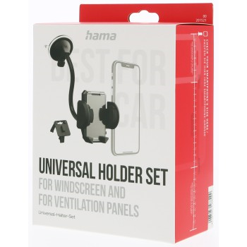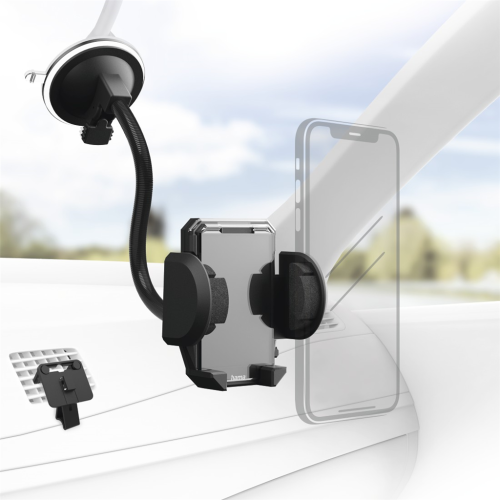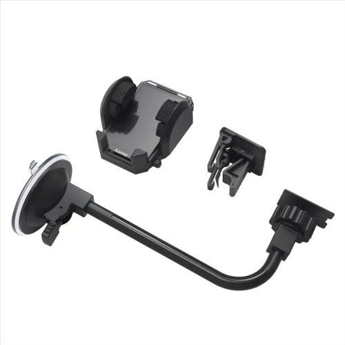 Hama multi držiak mobilu do auta 2v1 držiak na pripevnenie na čelné sklo pomocou prísavky alebo na ventilačnú mriežku vo vozidle jednoduché použitie vďaka pohyblivým čeľustiam, ktoré sa zariadeniu prispôsobia a bezpečne …