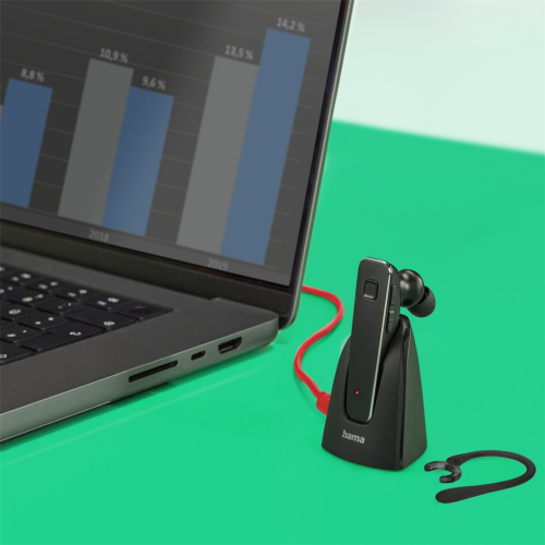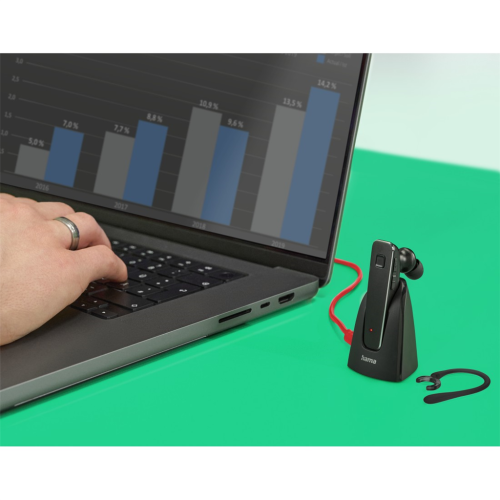 Hama MyVoice2100 mono Bluetooth headset vhodný aj pre videokonferencie, online vyučovanie, streamovanie, hudbu, podcasty, audio knihy, navigáciu atp. podpora hlasových asistentov Siri a Google funkcie rýchleho …