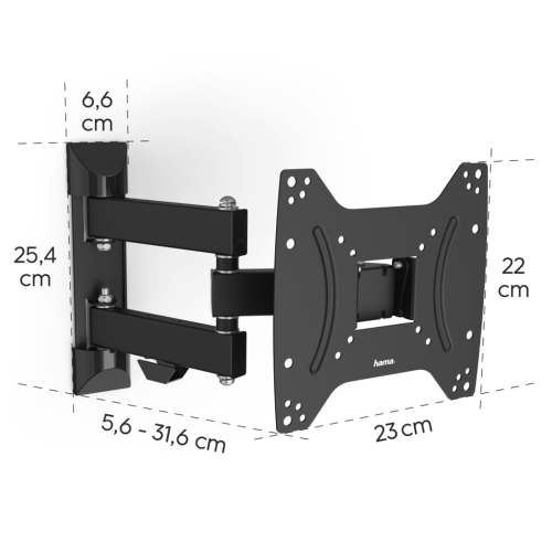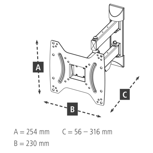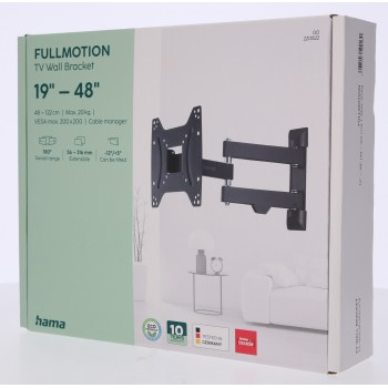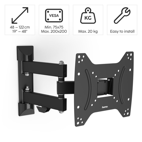 pohyblivý držiak pre LCD obrazovky s uhlopriečkou cca 19 až 48 palcov (48 až 122 cm) podpora VESA (rozstup závitov): 75x75 až 200x200 max. veľkosť upevňovacích závitov na TV: M8 konštrukcia: 2 nosné ramená, …